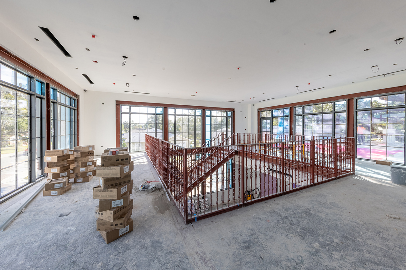 This two-story building will feature a 5,100-square-foot restaurant. Designed around a beautiful 100-year-old oak tree, the development integrates nature into its layout, including a second-story patio beneath the tree’s canopy.